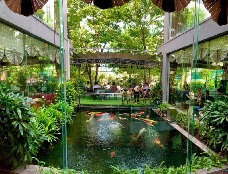 Một không gian cafe rất xanh được nhiều người ưa chuộng mang tên ECO Coffee. Nếu bạn thật sự là dân nghiện cafe thì chắc chắn bạn sẽ không quên được mùi hương quyến rũ của cafe tại quán này. Không gian ở đây rất gần gũi với thiên nhiên với hồ cá Koi, những chú gà và đôi vịt uyên ương. Bàn ghế với chất liệu bằng gỗ màu trầm mang lại cảm giác gần gũi, sang trong, ấm áp.