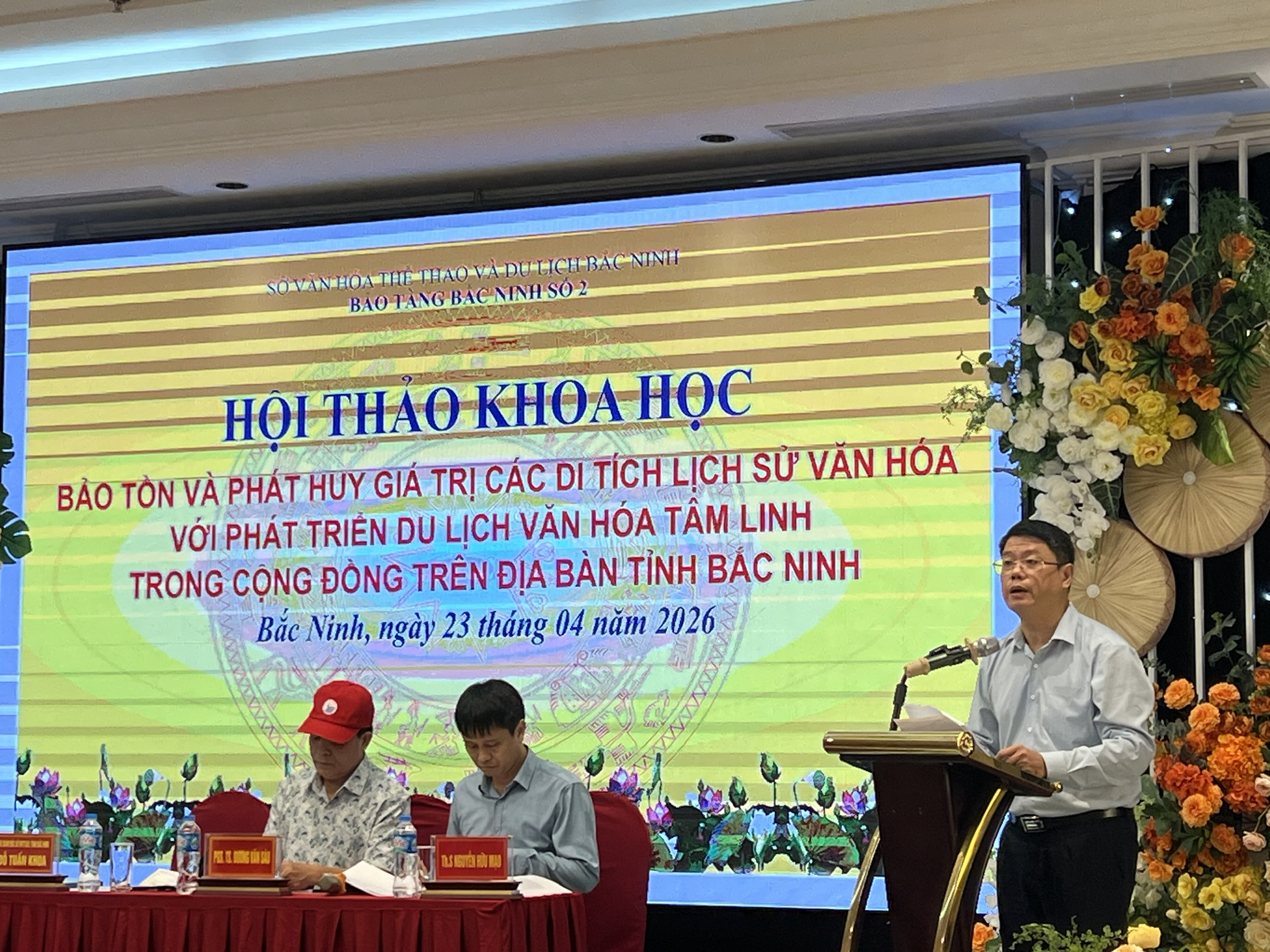 Sáng ngày 23 tháng 4 năm 2026, tại phường Kinh Bắc, tỉnh Bắc Ninh, Bảo tàng Bắc Ninh số 2 đã long trọng tổ chức Hội thảo khoa học với chủ đề "Bảo tồn và phát huy giá trị các di tích lịch sử văn hóa với phát triển du lịch văn hóa tâm linh trong cộng đồng trên địa bàn tỉnh Bắc Ninh". Sự kiện có sự tham dự của đại diện lãnh đạo Sở Văn hóa, Thể thao và Du lịch, các chuyên gia từ các viện nghiên cứu, Bảo tàng tỉnh, Trung tâm Văn hóa và Xúc tiến du lịch, cùng đông đảo các nhà khoa học, nhà quản lý văn hóa và đại diện chính quyền địa phương.