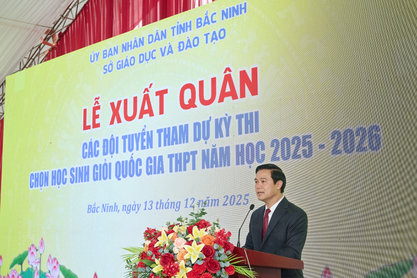 Tại buổi lễ xuất quân, đồng chí Lê Xuân Lợi đã ghi nhận những thành tích đạt được của ngành giáo dục, đặc biệt là giáo dục mũi nhọn trong những năm qua của hai trường THPT Chuyên Bắc Ninh và THPT Chuyên Bắc Giang. Đồng thời động viên và tin tưởng trong năm học 2025-2026, ngành giáo dục tỉnh Bắc Ninh sẽ tiếp tục gặt hái được nhiều thành công hơn nữa, chúc các em học sinh tham dự kỳ thi chọn học sinh giỏi quốc gia THPT năm học 2025 - 2026 bình tĩnh, tự tin và tỏa sáng.